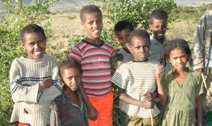| Sabokee und ihre Geschwister im Jahr 2004. Sie ist die Patentochter von Sarah-Gabriele Beermann. Inzwischen hat sie die Schule verlassen und geht täglich in die von ihrem Tukul 8 km entfernte Sekundarschule. | ||