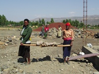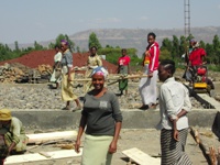 Der Bau der Schule erfolgte in der Zeit von Mai 2005 bis Januar 2009, da er immer wieder von Starkregen oder Baustoffknapp- heit unterbrochen worden war. Zeitweise arbeiteten mehr als 1000 Personen zur gleichen Zeit. Die schwere Arbeit wurde, wie fast überall in Afrika, vorwiegend von Frauen übernommen. Die örtliche Bevölkerung war froh, bezahlte Arbeit zu haben, und ver- suchte deswegen natürlich die Arbeitsdauer zu strecken.